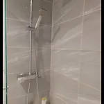 Separat toalett, badkar och dusch finns i badrummet.